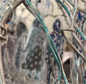 Kyle, Senior Exploring Art, Age 16 " Being Green" a mixed media construction commenting on a walk through urban nature