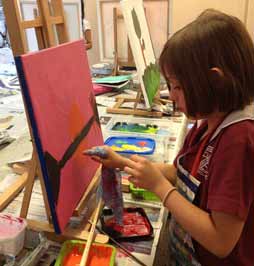 Ellie (8yrs) prepares the underpainting for her sunrise painting.