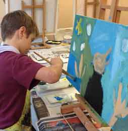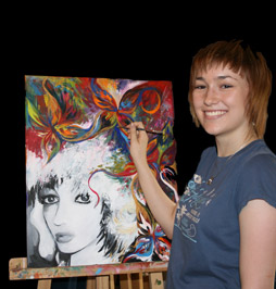 Natasha (17yrs) adds the finishing touches to her colourful portrait in the Thursday Evening Drawing and Painting class.